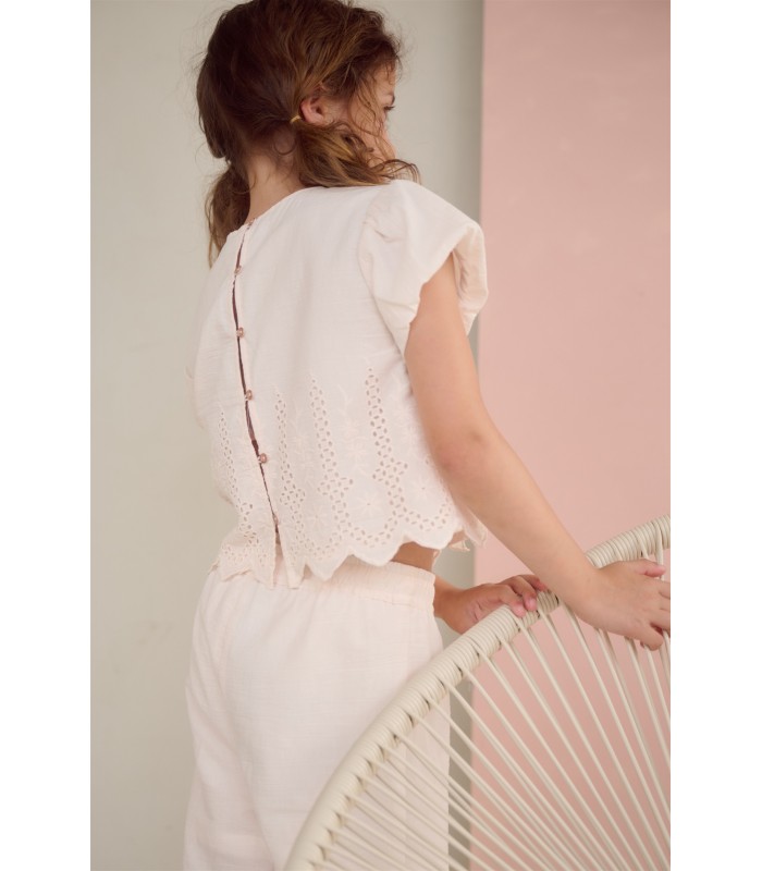 Hint of a Tint Salmon, Tika Blouse with embroidered Border